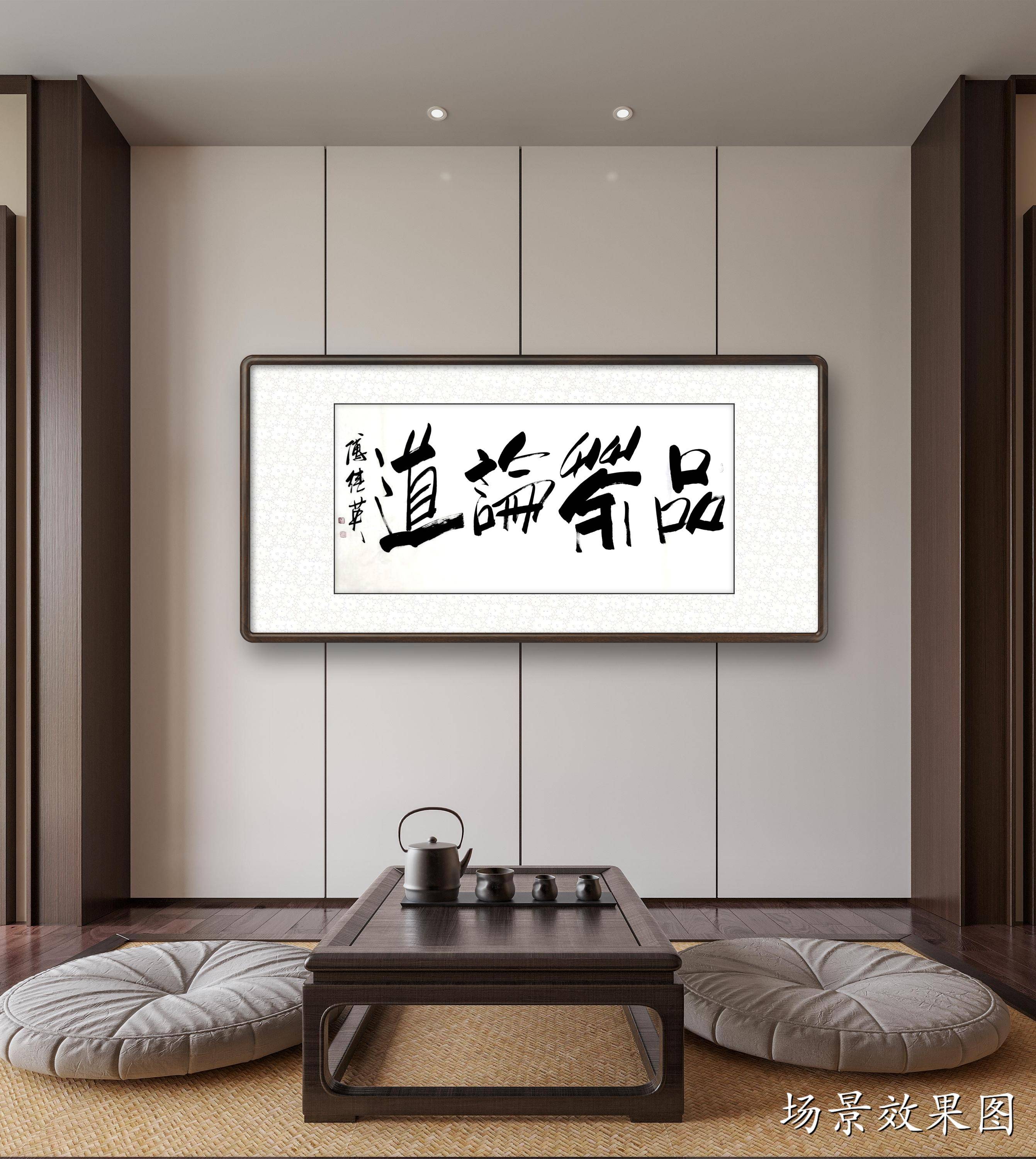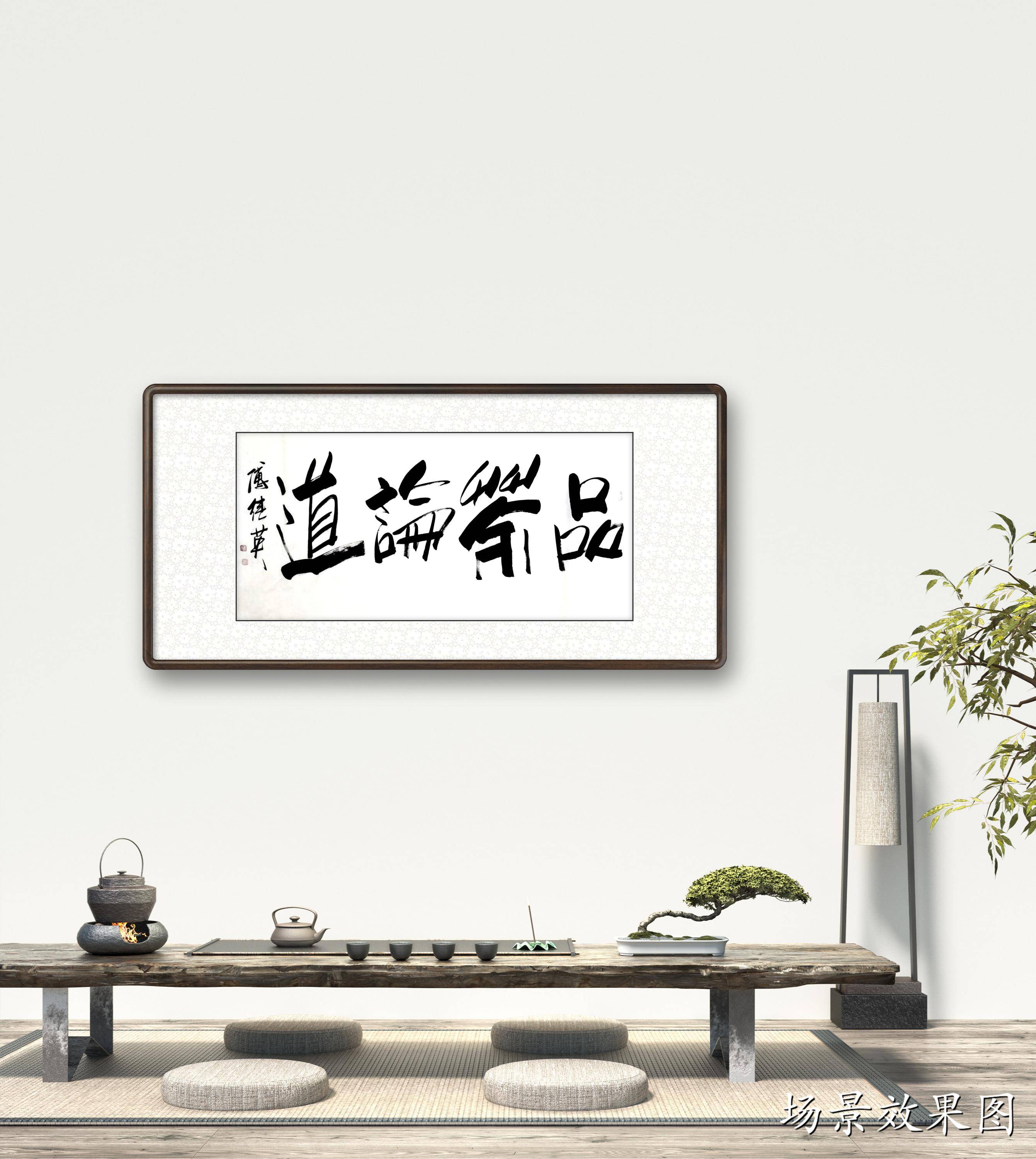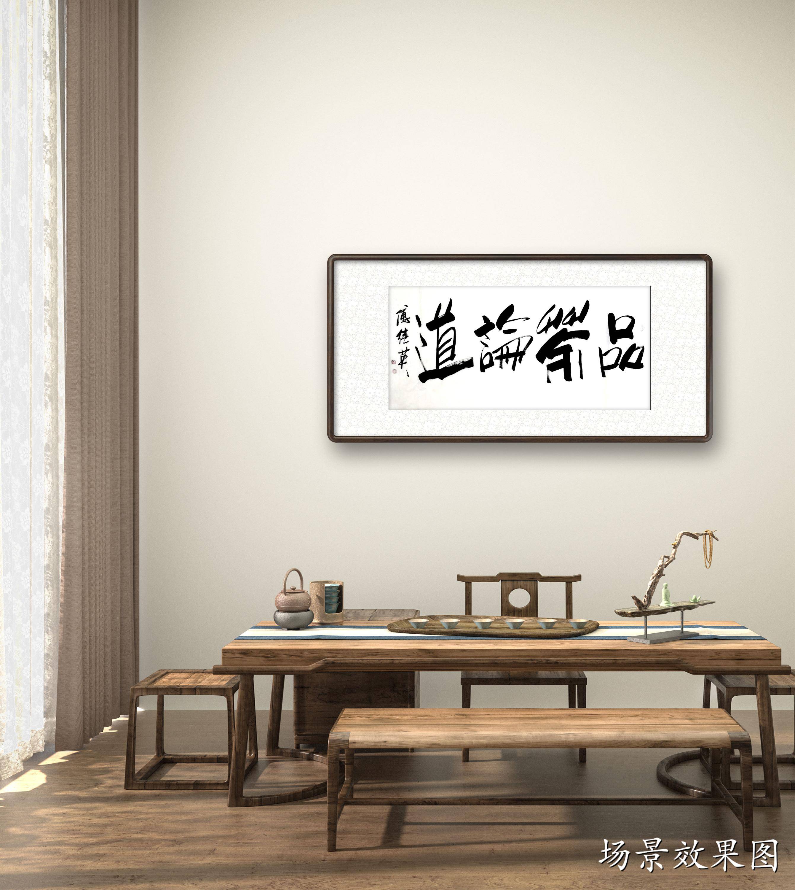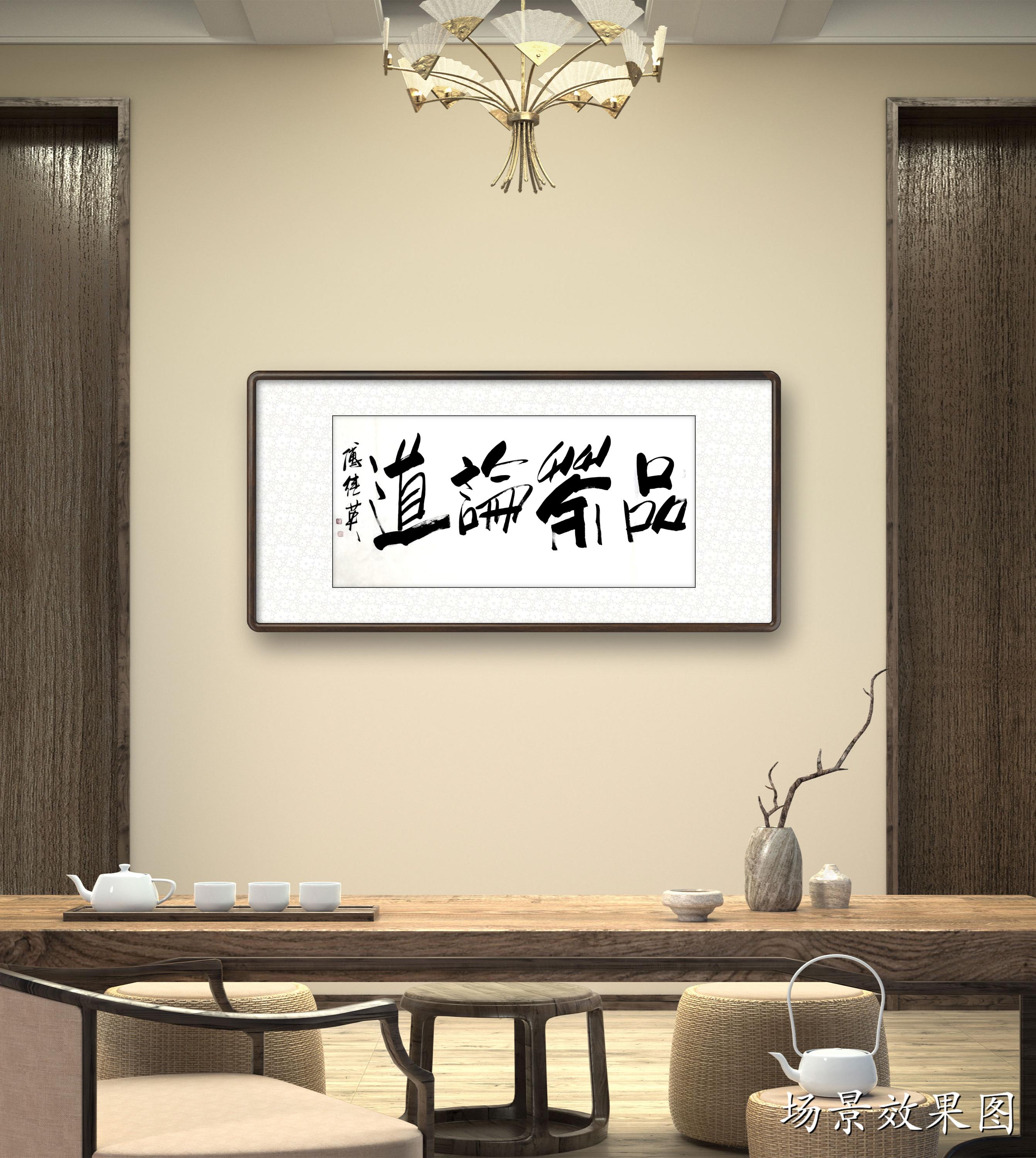 傅继英书法:品茶论道。茶中有大道,悟茶通人生。细细品茶,神清气爽,返璞归真,超凡脱俗,渐入佳境,可以通神,而穷宇宙之理。喝茶能够喝到熟悉的味道,会回想当时坐在这里喝茶的人都聊过些什么,或者想起曾看过的跟茶有关的故事或影像,又或者想起曾一直纠结的事,然后短短几秒的时间突然豁然开朗,这样进入另一种情绪或情状的,就是一种品茶的意境。品茶很多时候是一种偷闲,一场相逢一缕笑容,重在会心,空间的层次感正可以提供一种相逢的“曲折”味道。