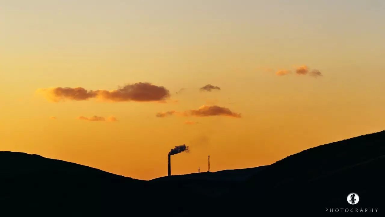 远处的大烟囱喷吐着仿佛正在制造云彩,