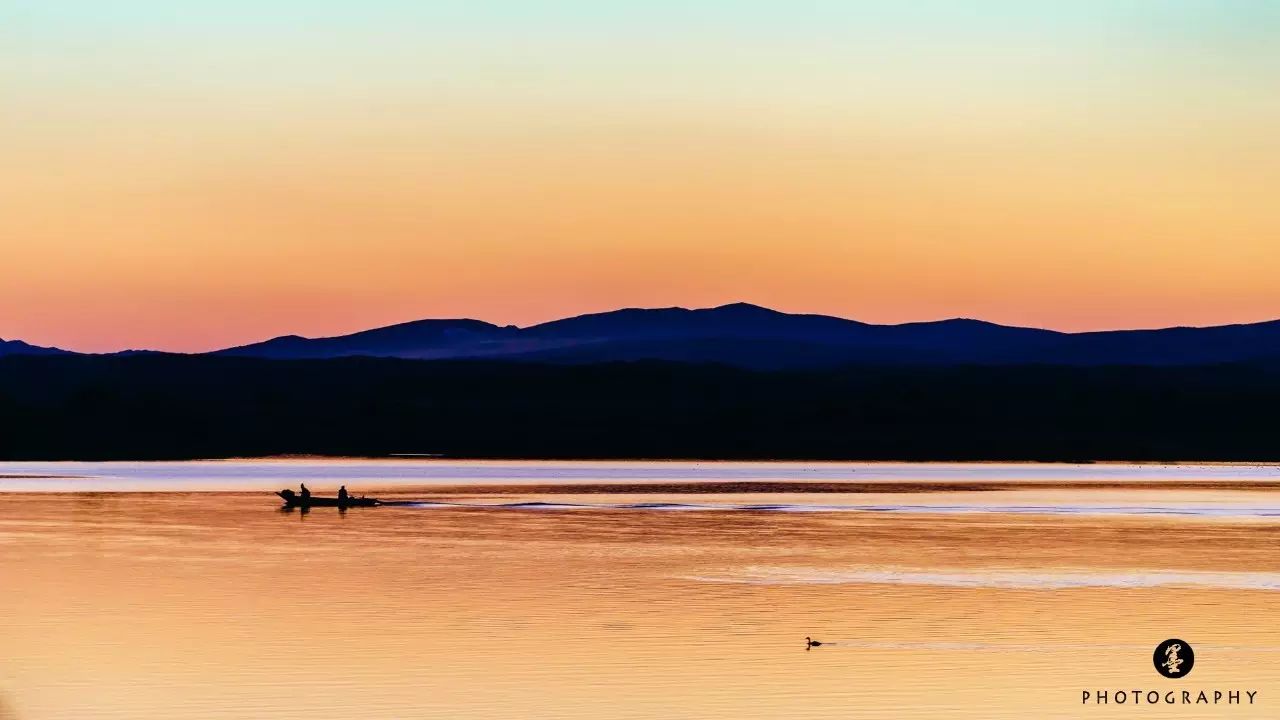 当余晖洒落在湖面上,恰巧一艘收工的渔船于湖面划过,完美的像设定好的一般,那么刚刚好,内心按耐不住的喜悦,好运总会留给真心爱着它的人。