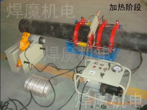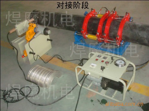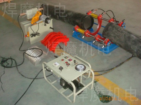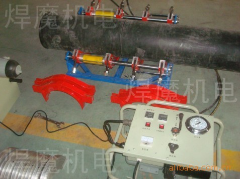 将焊魔牌pe管热熔对接焊机准备好,包括液压站、铣刀、加热板等相关电源,并将对接架平稳放置;