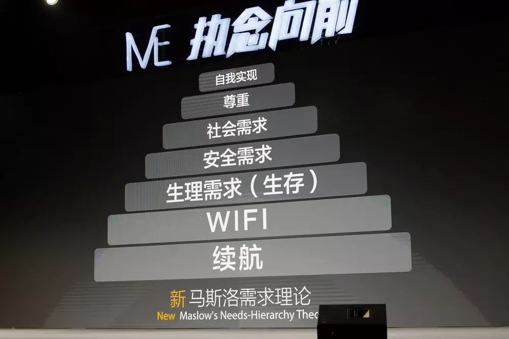 先看下M5。在向现场媒体介绍这款产品时,金立把马斯洛“人的不同层次需求”理论做了一点扩展,”WiFi“和”续航“作为人新的基本需求赫然在目。这其实是一个比较老的段子但也很自然的引出了M5最重要的特性:超长续航!金立实现这一点的方式看起来“简单粗暴”,那就是扩大电池容量。于是,我第一次看到一款正规大厂推出的手机拥有6020毫安的惊人电量——这简直堪比一个移动电源了!