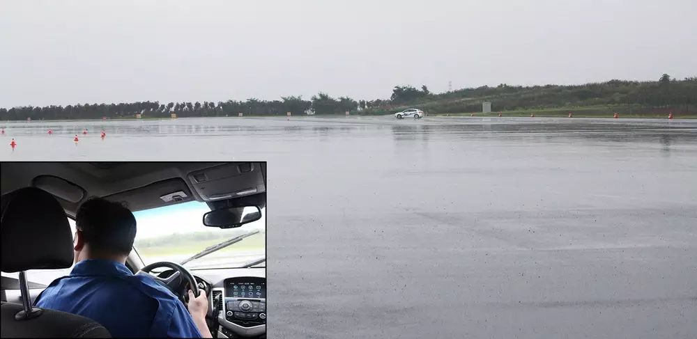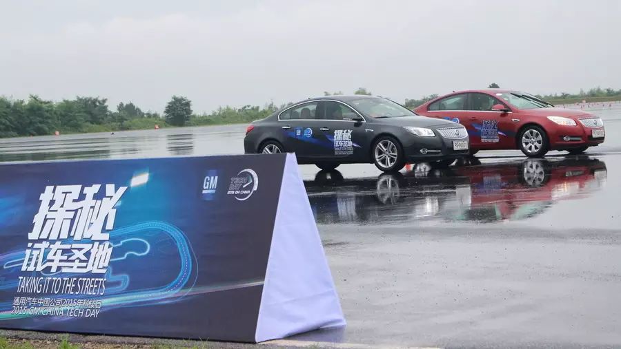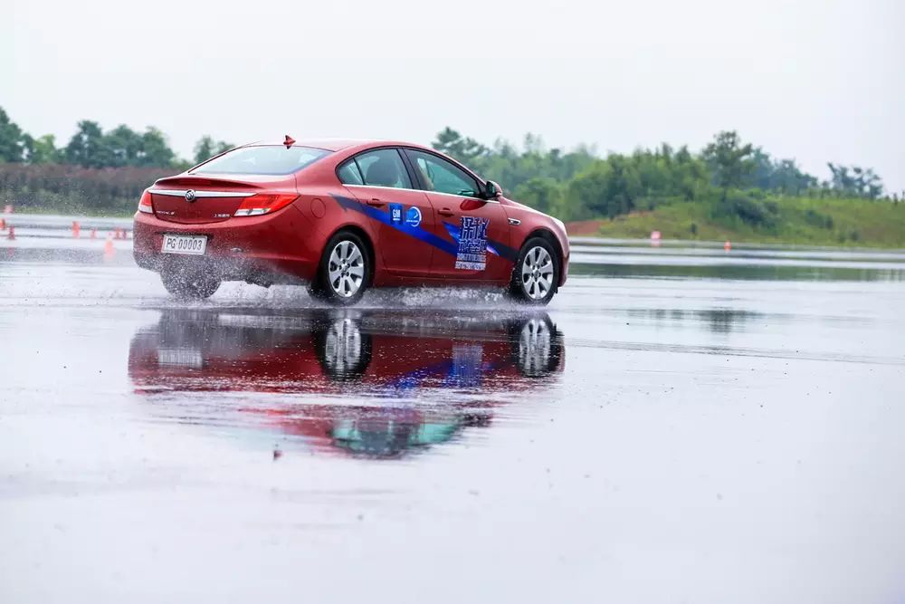 第二场试驾则更为刺激,需要在1分30秒的时间内完成动态广场上一个带有连续高速过弯、绕桩、直角转弯等复杂路况的赛道。据称这个赛道是广德研发试验中心试车员考试的最初级赛道——唯有通过这个测试才有资格在试验场里开车!我驾驶的是一辆红色的君威GS,而此时天依然下着中雨。教练表示不用考虑计时,尽可能的安全完整的跑完整个赛道,不要触碰道路两旁标示用的三角锥。
