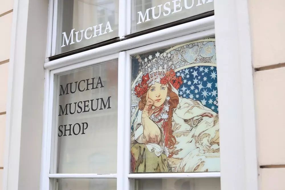 与第一家博物馆那种阴郁沉闷的气息不同,我们造访的第二家博物馆是捷克国宝级画家阿尔方索.穆夏(Alfons Mucha,或翻译为穆哈)的画廊。你或许并没有听过这个名字,但相信应该会对他的作品有印象,因为这位以绘制剧院海报图片起家的画家在突然之间声名鹊起。他的那种介于白描、版画效果之间的“新艺术主义”人像作品以绝对的细腻和唯美在整整一个世纪后再次得到了世人的极大青睐。特别是在韩日两国,穆夏的海报人像被漫画师、插画师看做绝对的经典,出现了大量拥趸。即使是对于我这样的外行而言,这种从不故作高深,始终优美的绘画也切切实实带给我一种美的享受。特别是在对比刚才那个让人心情阴郁的博物馆后,再看到穆夏的这些作品,这种巨大反差带来的心灵冲击是显而易见的。所以,我在留言簿上写下一句感慨:“来到布拉格,看到了一些真正美好的东西”。