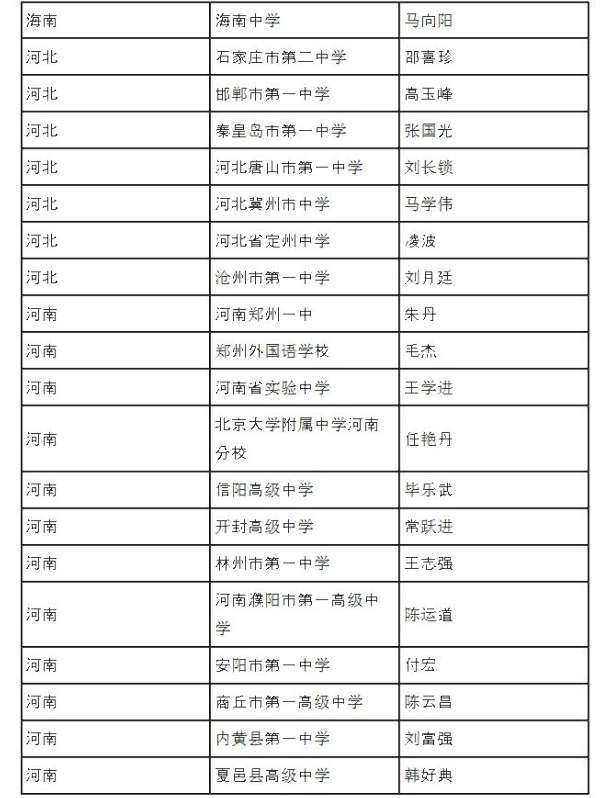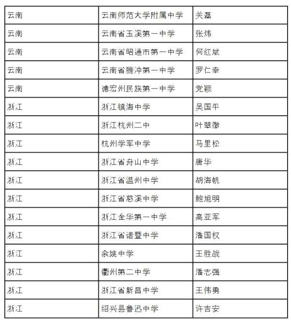在名录中,浙江省有12所学校,我市仅温州中学。而在温州中学的校长一栏上,填写的仍然是前一任校长胡海帆的名字。
