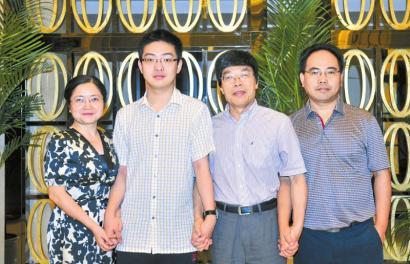 来自成都七中嘉祥外国语学校的郭怡辰与校长雷解民(右二)及父母合影。