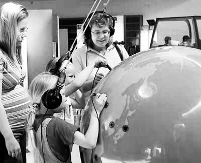 芬兰小学生在赫尤里卡科学中心主展厅的地球仪旁参观。新华社记者赵长春摄