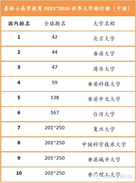 今年中国内地共计有37所大学入围泰晤士高等教育2015-2016世界大学排行榜,其中北京大学和清华大学都进入了全球50强,分别位列42名和47名,北京大学的排名也冠绝全国所有大学,位列榜首。另外今年入围的中国内地大学中排名变化还是比较大的,其中浙江大学相比去年而言大幅进步,从全球300名开外进入到全球251-300名。