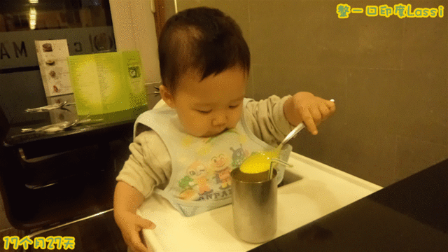 吃饭会主动要求坐到餐椅上。一天吃晚饭,爸爸喂一口汤,好像有点儿热,溜宝没闭嘴,直接吐出来了,喂下一口时,勺子一到嘴边,溜宝立刻反应十分强烈地表现出“烫烫”的动作,即小手放在嘴边保护着自己,然后吹啊吹(跟姥爷学的这一出,应用十分广泛和频繁)。