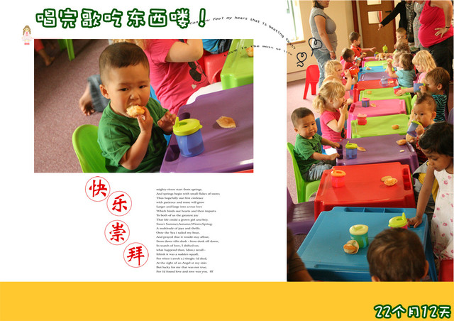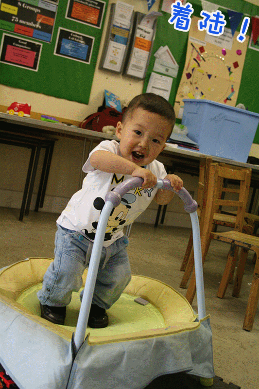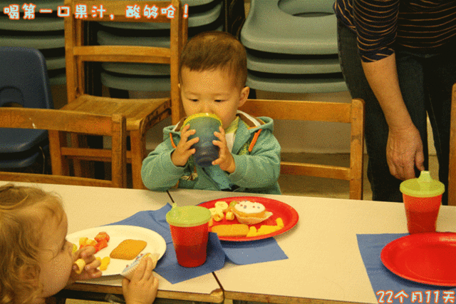 开始用“吃”字,饼干掉地上了,捡起来,自己不吃,给我了,让我:“吃。”吃饭的时候也是,让我和他爹“吃”。吃完饭,会说“饱”,然后就要求离开餐桌,再让吃,就把碗、盘子都端得远远的放,然后不停地说“饱、饱”,要求“下、下”,即下地离开这里。说“没”更准确了,不再是“麻~”了,而是“没呀!”“蹦”“跳”“跑”都会边做边说。