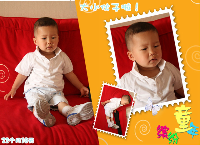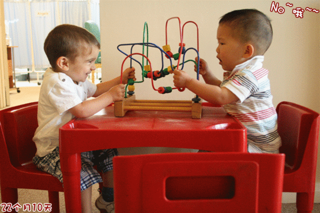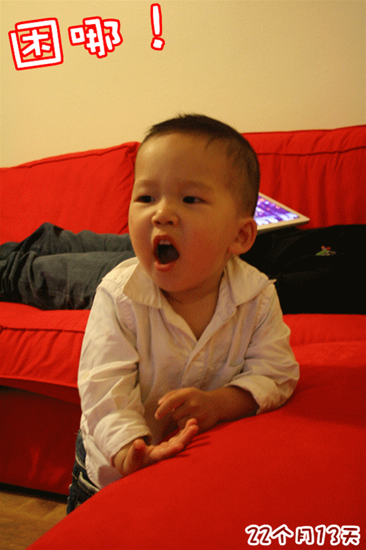 不要什么或者不想做什么就晃个小手说“No”;还经常说“不要”,也是晃小手的;不喜欢穿的衣服、帽子、鞋子会说“脱掉”;居然会说“够不着”了;临出门正在吃苹果,我说:“走了,出去了。”他就把苹果小盒盖上盖子说“带”;还会说“给”、“拿”,知道这两个的区别,用得很恰到好处;还会说“勺”、“叉”,能分清楚,看到院子里他爸铲地的小铲子,也说“勺”;还会叫“大牛”了,叫的是英文“Danny”。常说的一个字还有“疼~eng~”;还知道指着各种表、钟说“表”,早上爸爸的手机闹表响,他听到了也说“表”;看到大海、河流、湖泊都叫“水~咦~”,也知道喝要喝水的那个“水~咦~”。