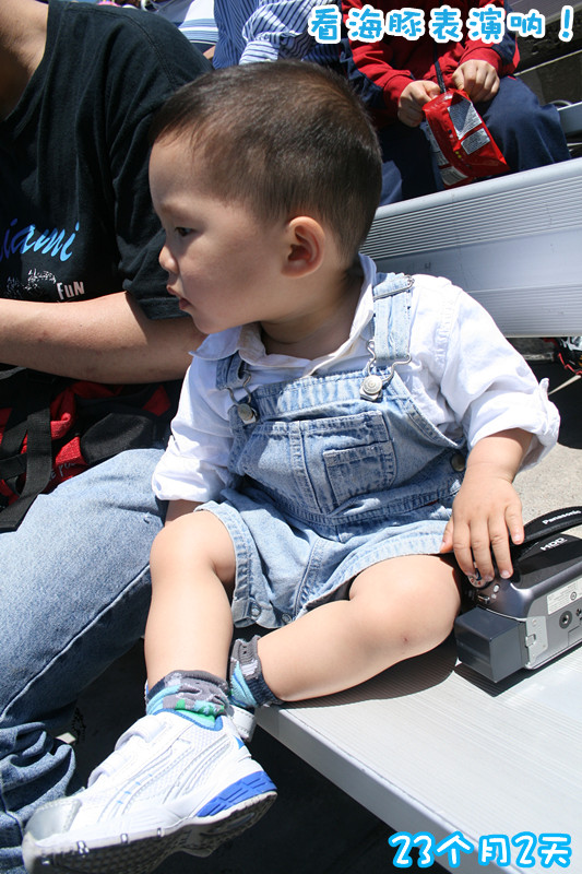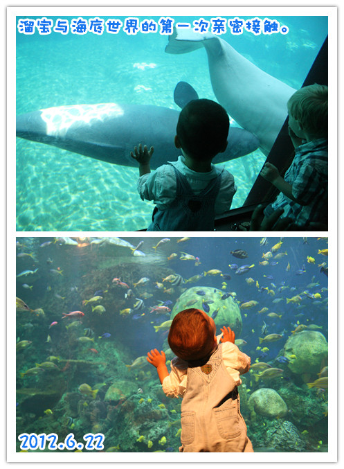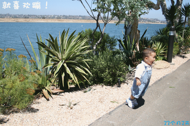 一天,溜爹摸他的脚丫,他不乐意,就说:“别摸,别摸。”还会说“大船大”,“海豹”、“海狮”,“海鸥拜拜”说成“哦额拜拜”。我们来美国的第一天看的鲨鱼表演,之后就再没提过,一周后又看到了一张鲨鱼的图片,溜宝指着说“鲨鱼”,我和他爹又是惊讶。