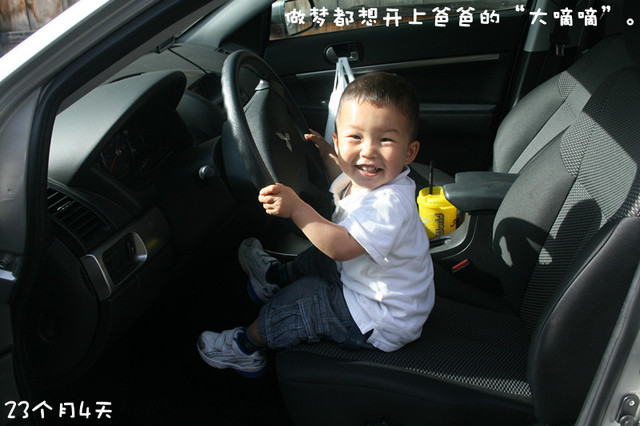 因为我们这次美国行是自驾游(租了个车),所以,溜宝很多时间是在车的后座上度过,这对于喜欢活动的溜宝来说是个挑战。可以说,溜宝大部分时间表现还可以,在后面睡觉、玩、看风景,小部分时间以嚎哭度过。有一天,我开车时,听见溜宝在我后座上自己玩,叨叨咕咕的,有时心平气和,有时烦躁不安,我让他爸探查一番发现,人家跟水壶啥的闹别扭了,又打又骂连蹬带踹的,不知道水壶咋惹到他了,这脾气,嘿!
