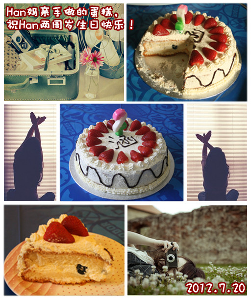 我趁溜宝下午睡觉的当儿把昨晚做的蛋糕给裱上花了,我为给溜宝两周岁生日亲手做蛋糕而刚刚学会,这个蛋糕是我“自制蛋糕史”上的第3个蛋糕,可却是超水平发挥,比我后来做的第4、5、6个蛋糕都好。这就是母爱的力量吧,它能让你迸发出超常的能量。
