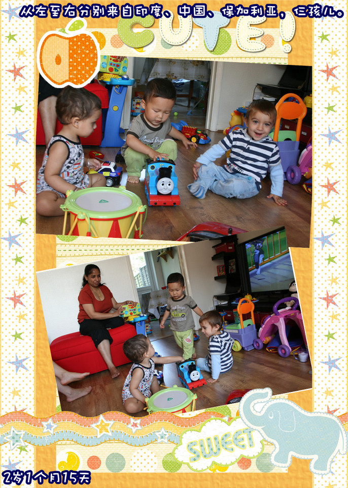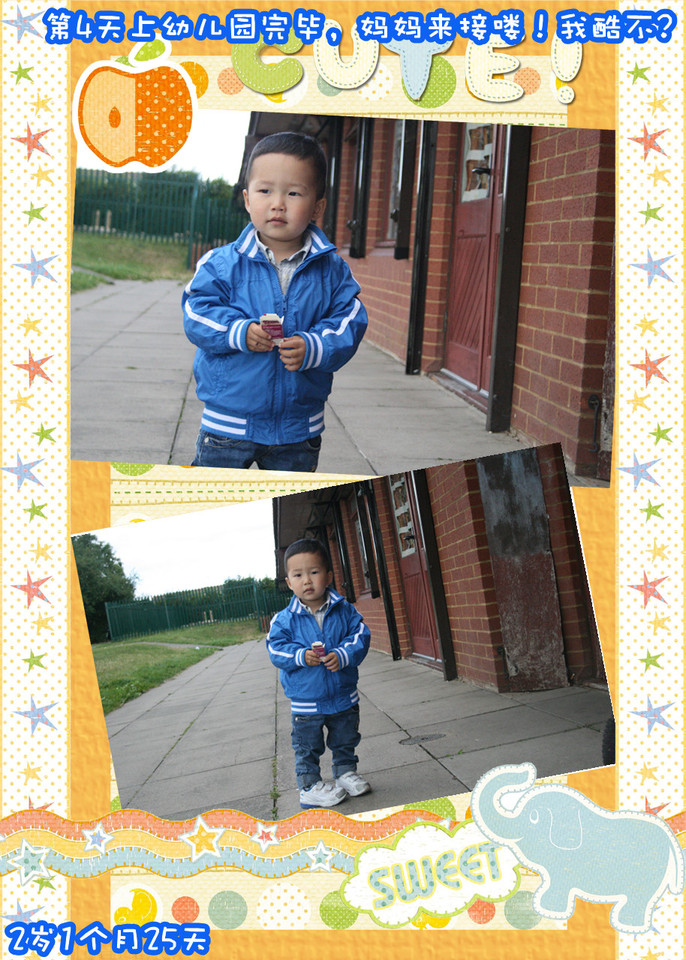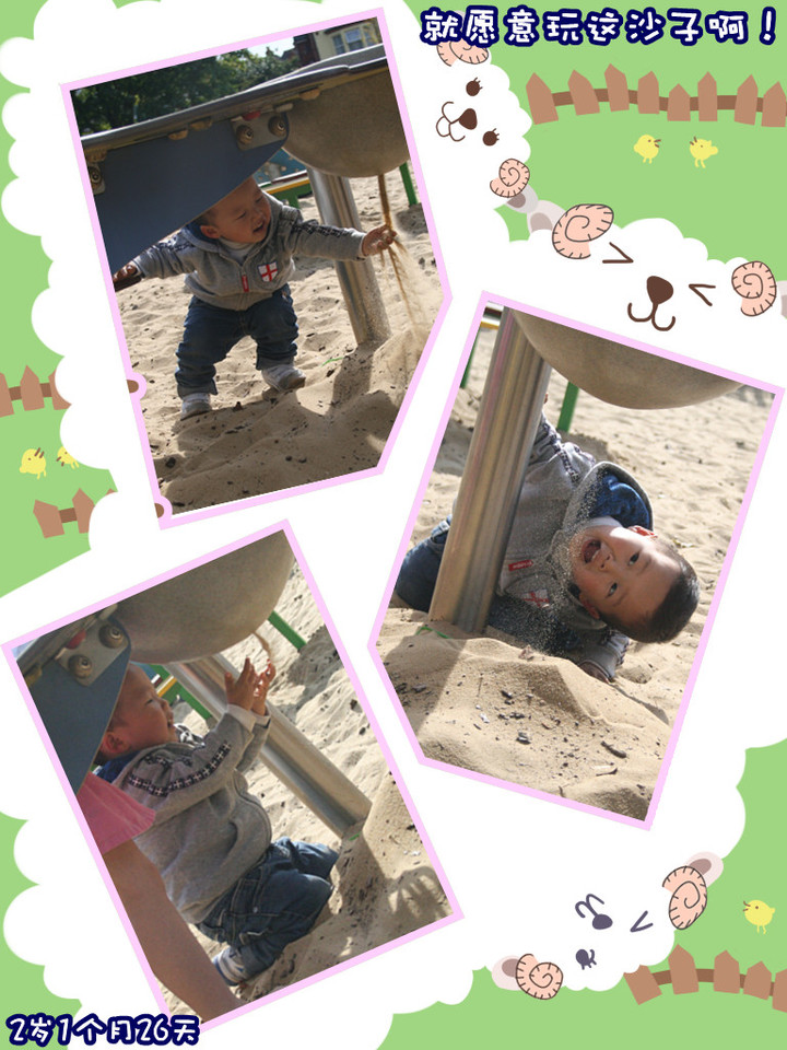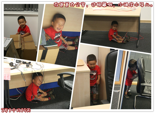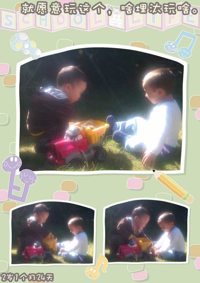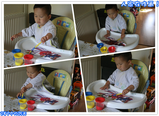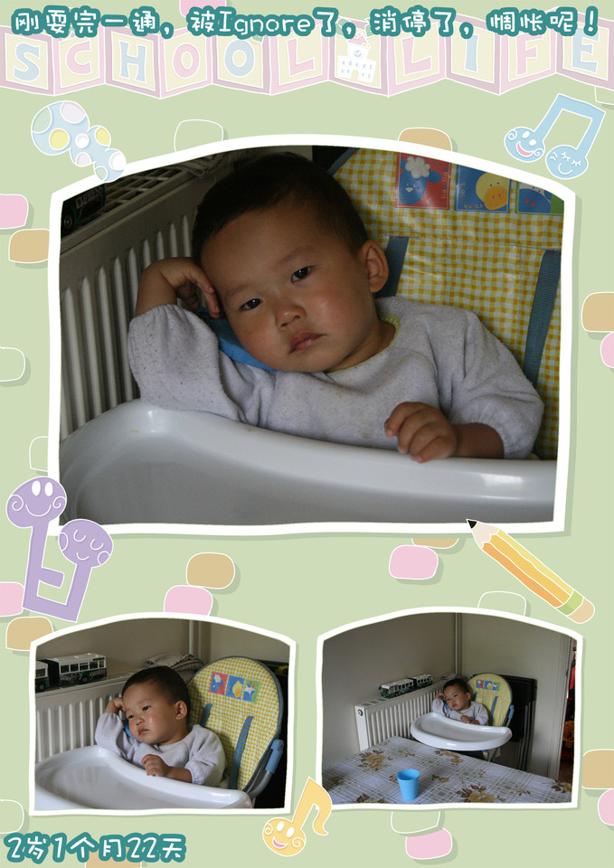 再比如吃饭、喝水、吃零食等事情,他总是有充分的驾驭碗筷的需求,饭不让我喂,甚至非常难崴的东西也不让我帮崴,总说:“Han帮(意思就是不让‘妈妈帮’,不让‘爸爸帮’,就他自己帮他自己)!”于是乎,就自己没深没浅地胡乱崴,而且活动幅度还没有跟对空间事物的认知度想结合,总是把吃的弄洒,洒到桌子上、椅子上、身上、地上,接下来就是我无止境地收拾(这就不“Han帮”了)。有时一天好几次类似事件发生,每到那个时候,我真是烦透顶啊,就超级不理解为什么有的人要生2个孩子!