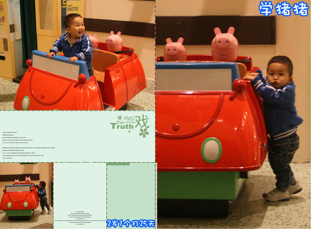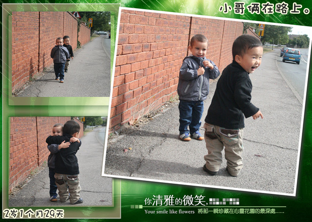 还有比如说出去玩,现在我尽量避免以步行的方式去目的地,不得不的时候,那我就请等着“崩溃”吧。有时从大牛家去儿童中心玩,有时因某种原因没推推车去超市,都需要步行,好家伙,溜宝可就撒了欢儿了,这顿跑,这顿跳,这顿玩,5分钟的路要走半个小时左右。而且他还不让抱、不让领,就那么自己自由自在地想怎么走怎么走,想走多慢走多慢。可倒是知道怕车,一说“来车了”,他噌家伙窜墙根底下去,自己念叨着“靠边儿”。但有时我真是着急啊,有事情在后面等着呢,气得我嗓子眼儿冒烟儿!
