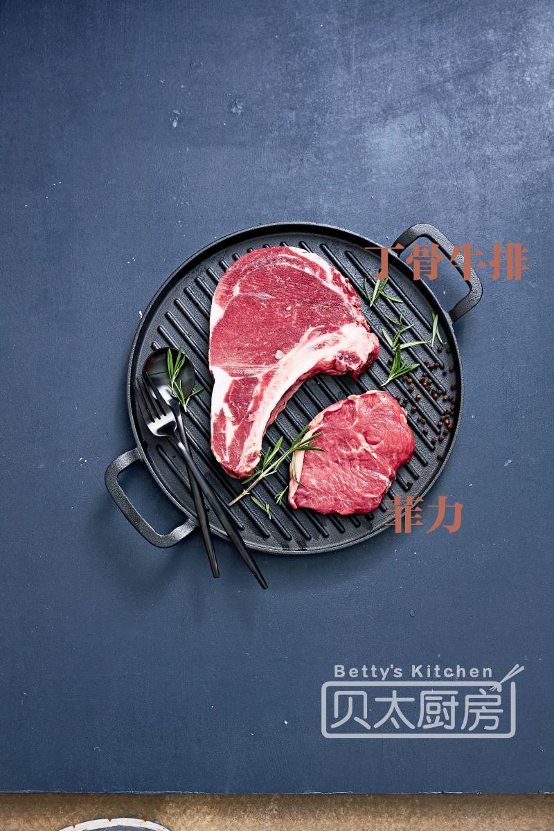 1/ 牛排好吃,首先是肉质要选对,其次便是锅子要选好,对于新手来说,一个平底铸铁锅,或者厚实一点的平底锅都可以煎出出色的牛排。