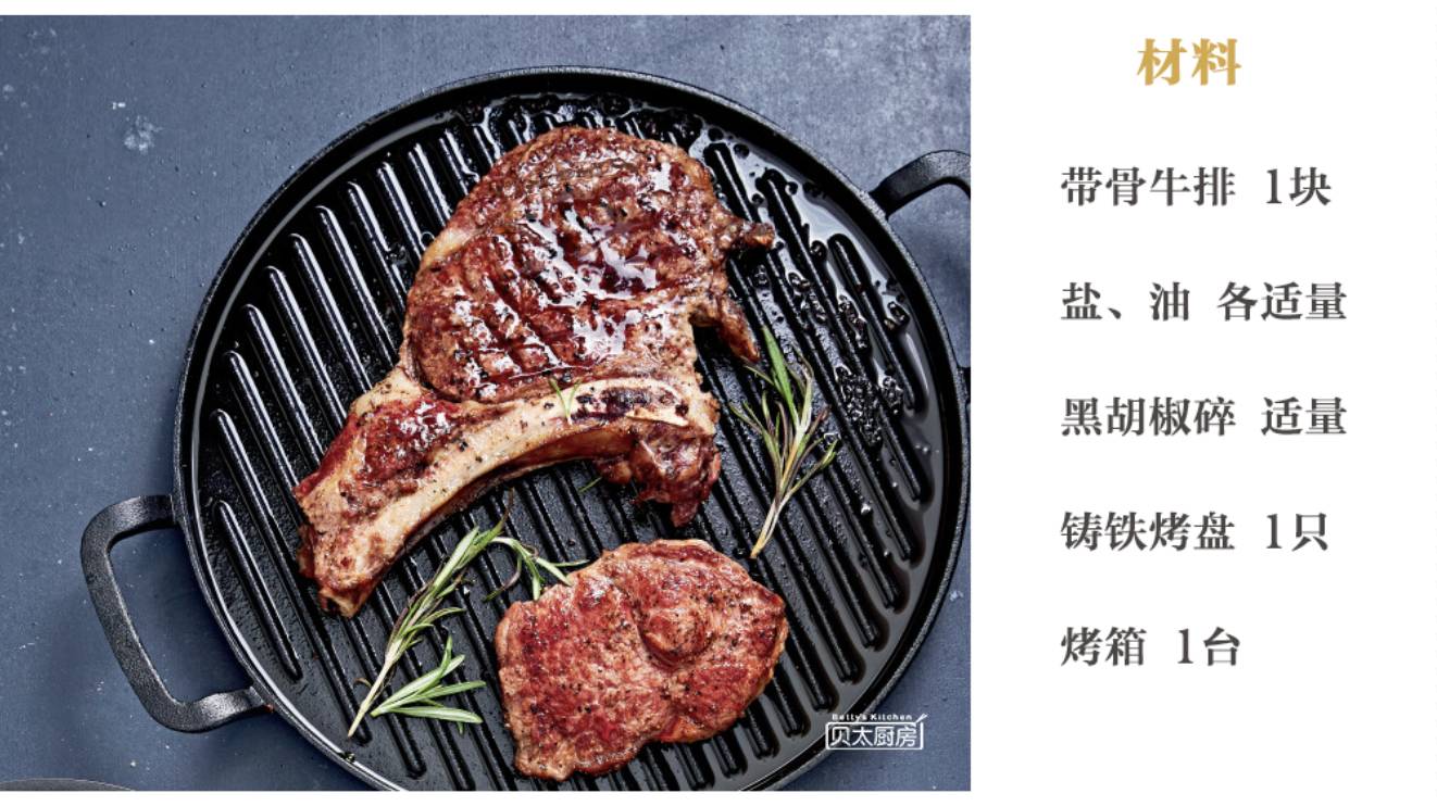 3/ 因为牛排肉质较厚,因此需要再放入烤箱烤熟其内部。