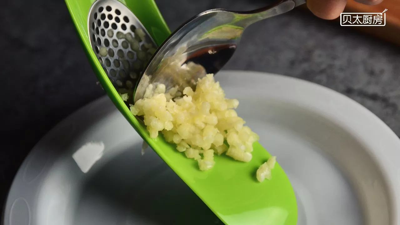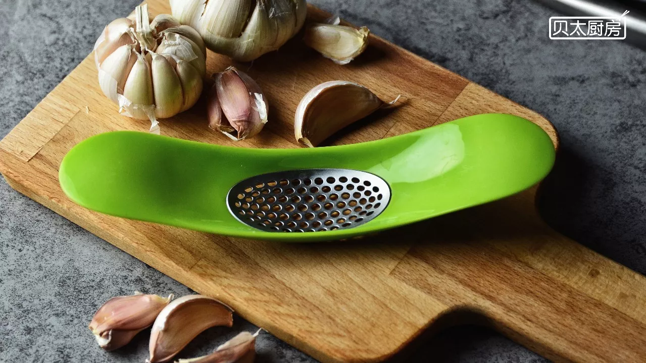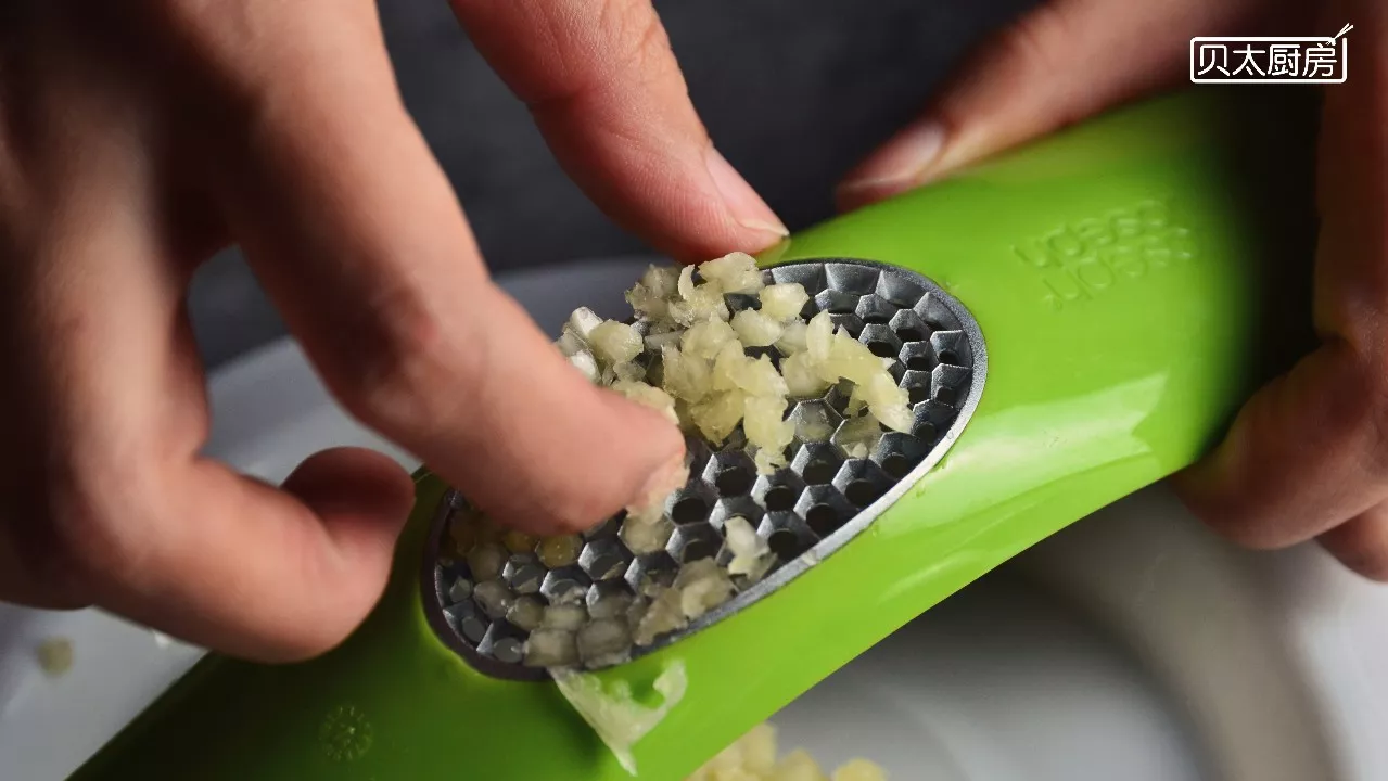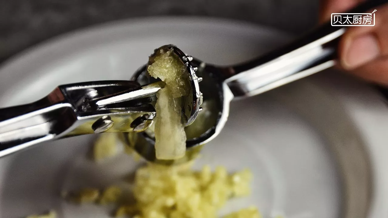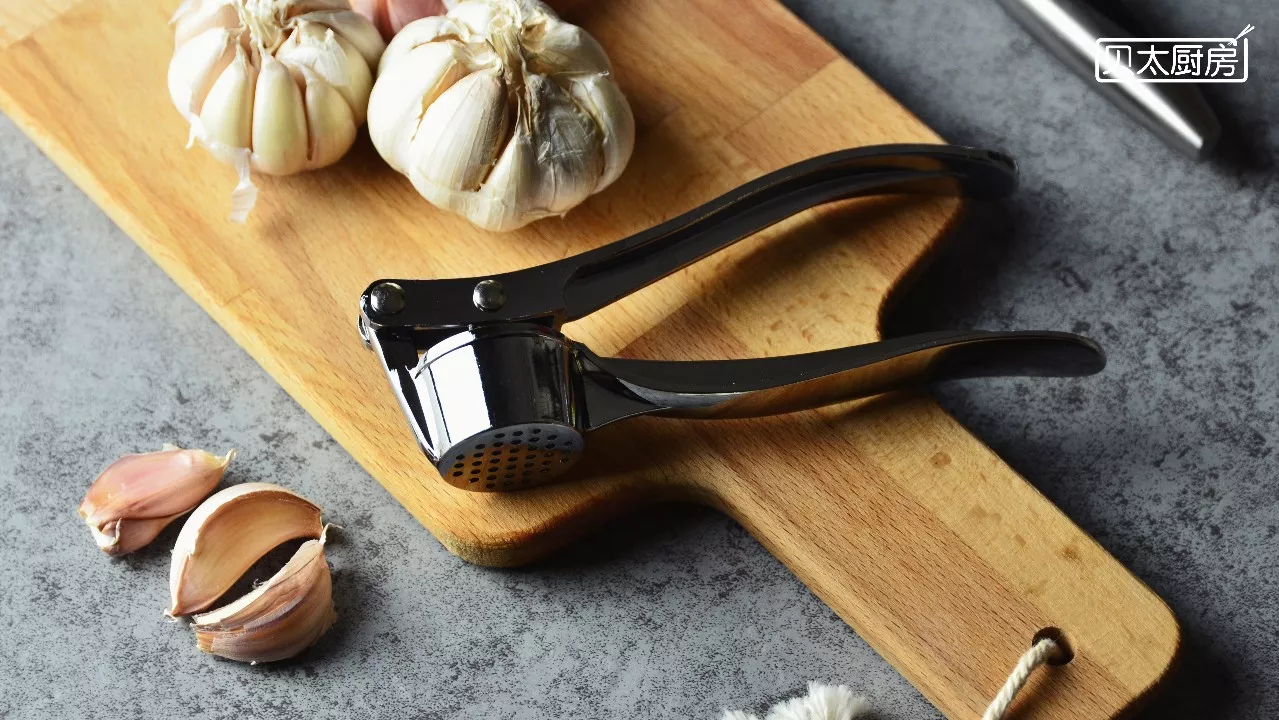 最后,压蒜器的小孔里可能会残留一些蒜粒,需要用手抠出来哟!