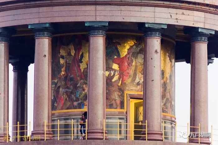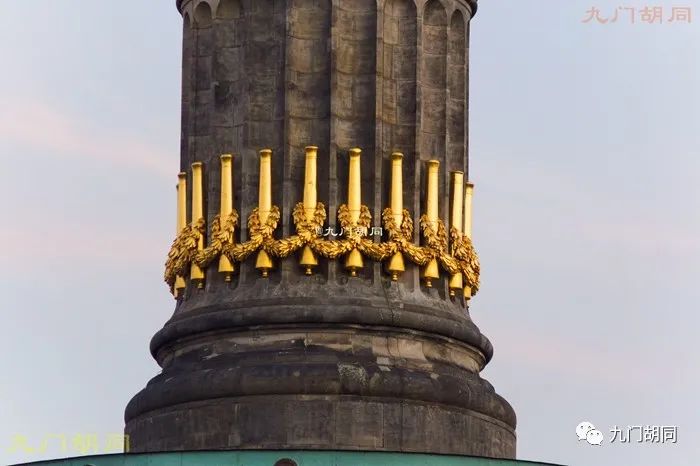 四节柱子上的镀金装饰,是60根从三次战争中缴获的炮管,炮管由古希腊象征胜利的镀金月桂花环缠绕连接。