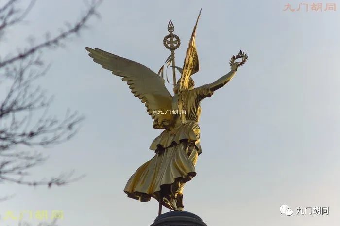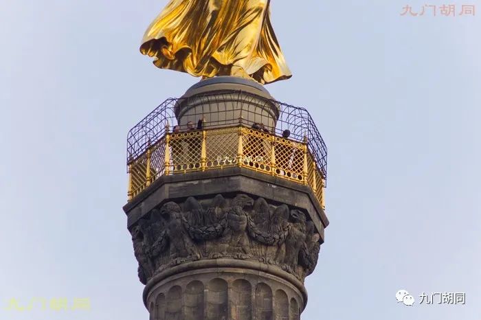 纪念柱顶上,是金色的胜利女神像,是普法战争胜利后加上去的。