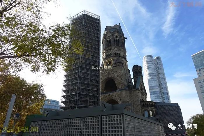 二次世界大战中,教堂被严重炸毁,战后是否保留曾引起过巨大争议,最终为了起到警示战争的作用,教堂的钟楼和部分前厅残骸被保留了下来,并在周围建起了一个新的小教堂和钟楼。我去的时候,新钟楼刚好维修被脚手架围了起来。https://p26.toutiaoimg.com/origin/pgc-image/0a30a76433c74b6fa3b6d29f39f3b2d2