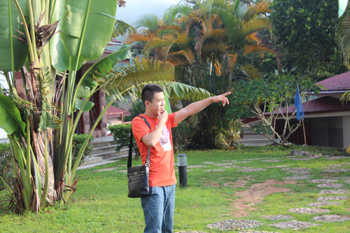 领队,你是故意的么,站人家后面照相,显得你脸好小