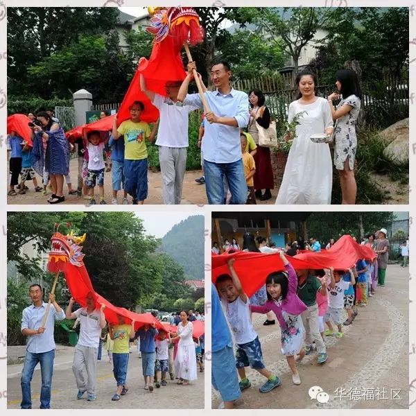 图为:终南山自然学校2015端午节庆典活动老师带着孩子们“洒艾水&舞龙”