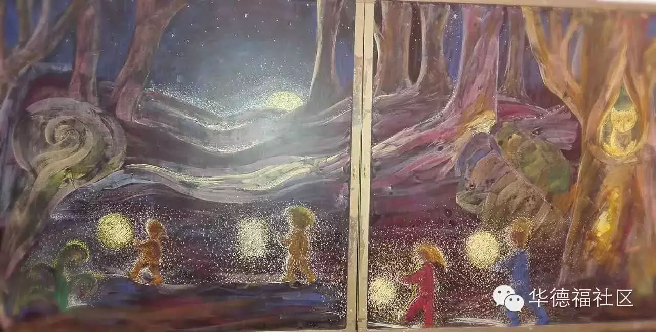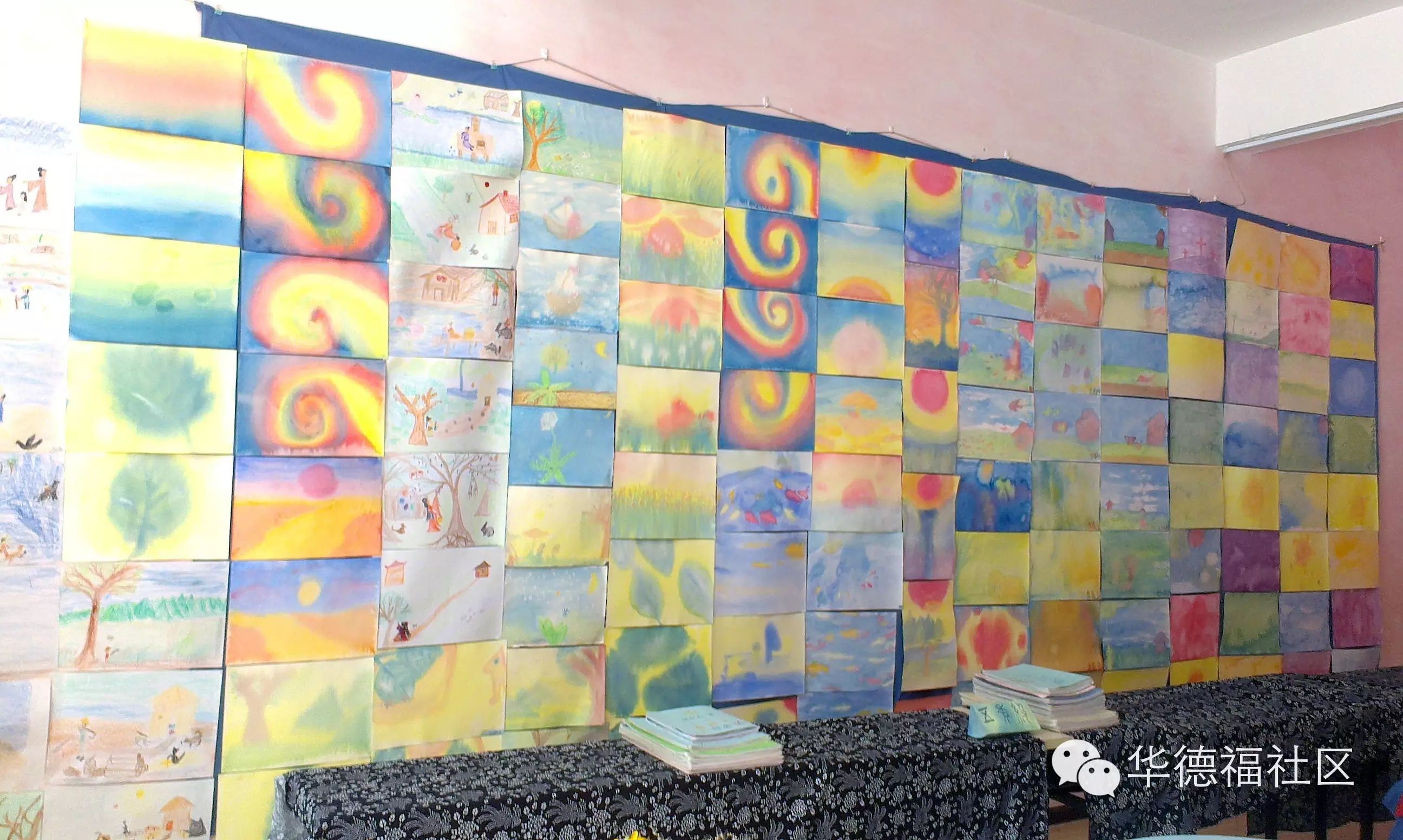 图为:2015年期末小学部孩子湿水彩绘画作品展示