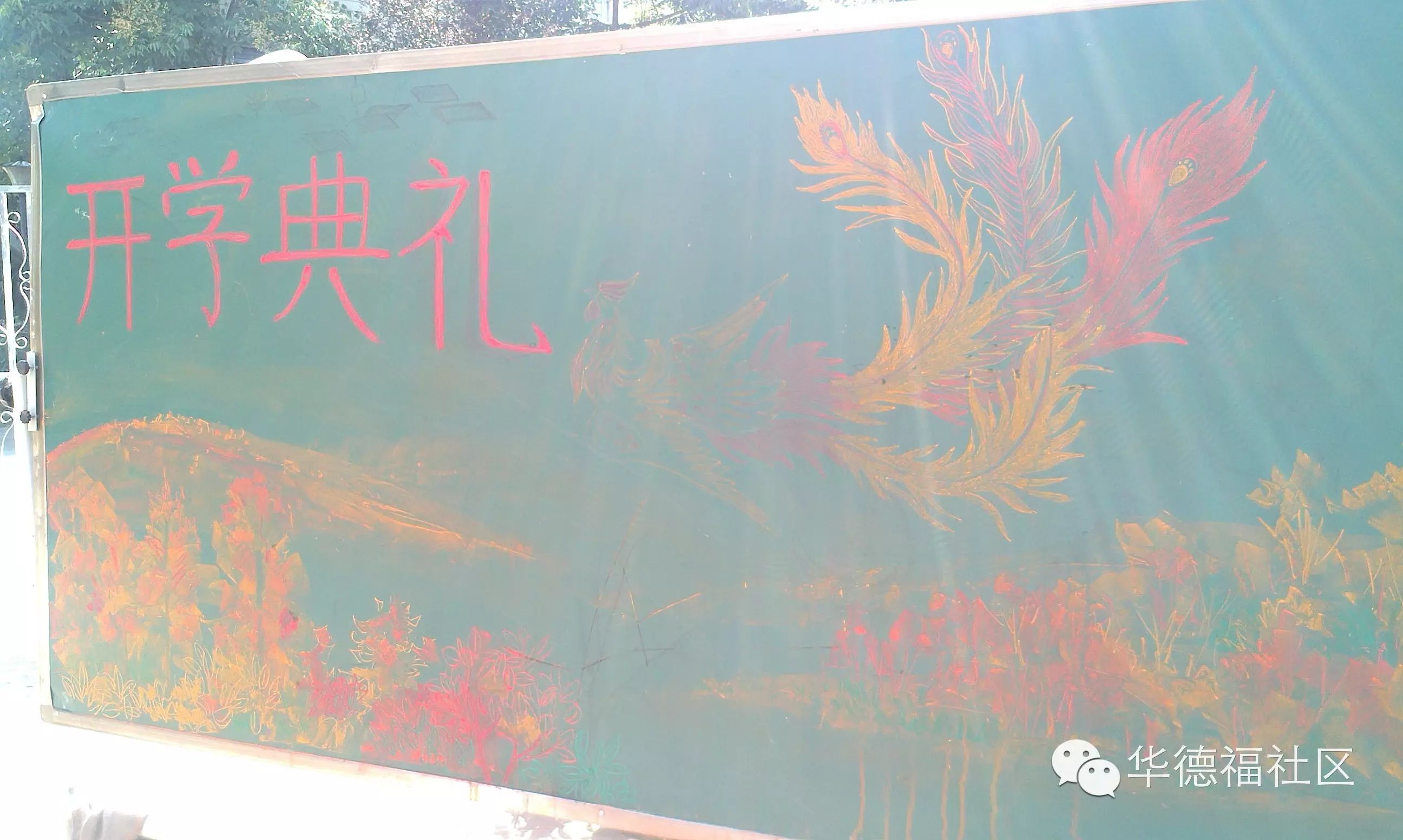图为:2015年秋季9月新学期开学典礼上的黑板画