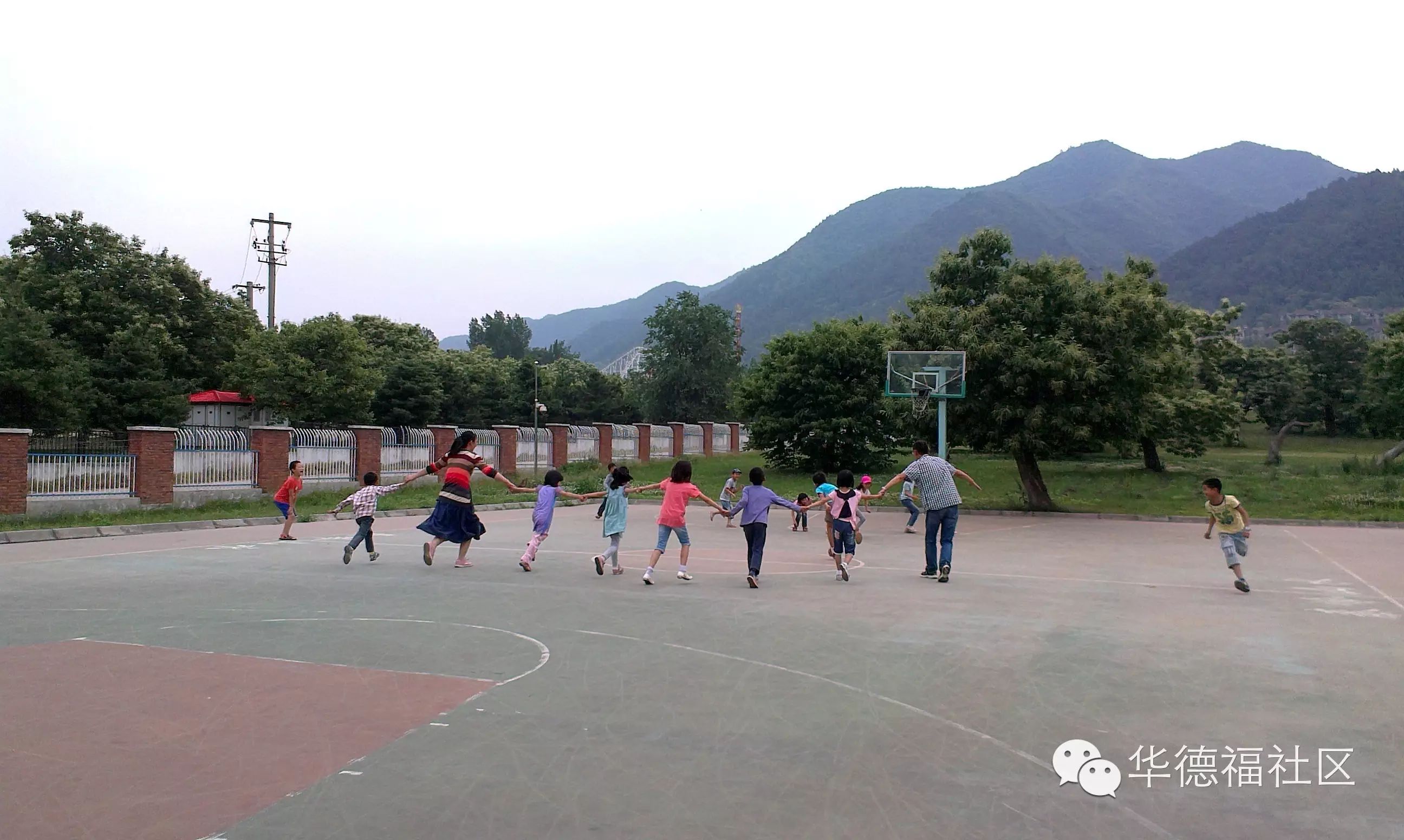 图为:终南山自然学校的老师带着孩子们在游戏课上