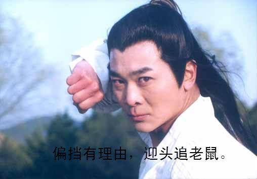 第五首:偏挡有理由,迎头追老鼠。(偏当雨里闻,应投最高树。)