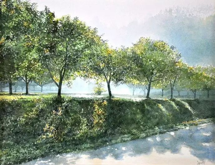 阿部智幸是日本著名的水彩画家,做过多年美术教师,对传授绘画技法颇有心得。他擅长以自然景色入画,用画笔记录身边的风景,描绘光的节奏和韵律。作品不仅写实程度让人赞叹,其中细腻感人、意蕴丰富的清新诗意更能带给观者许多感动。其作品入选过许多知名美术展,如日本水彩展、西班牙国际水彩画展等。