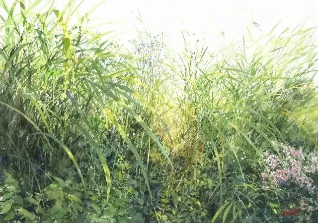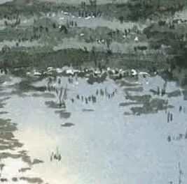 5,在这幅作品中,只有在画水边的微小的反射部分时才使用了留白液。使用留白液的最大优点是,能有效地达到一种晕染效果,最大限度地活用笔。