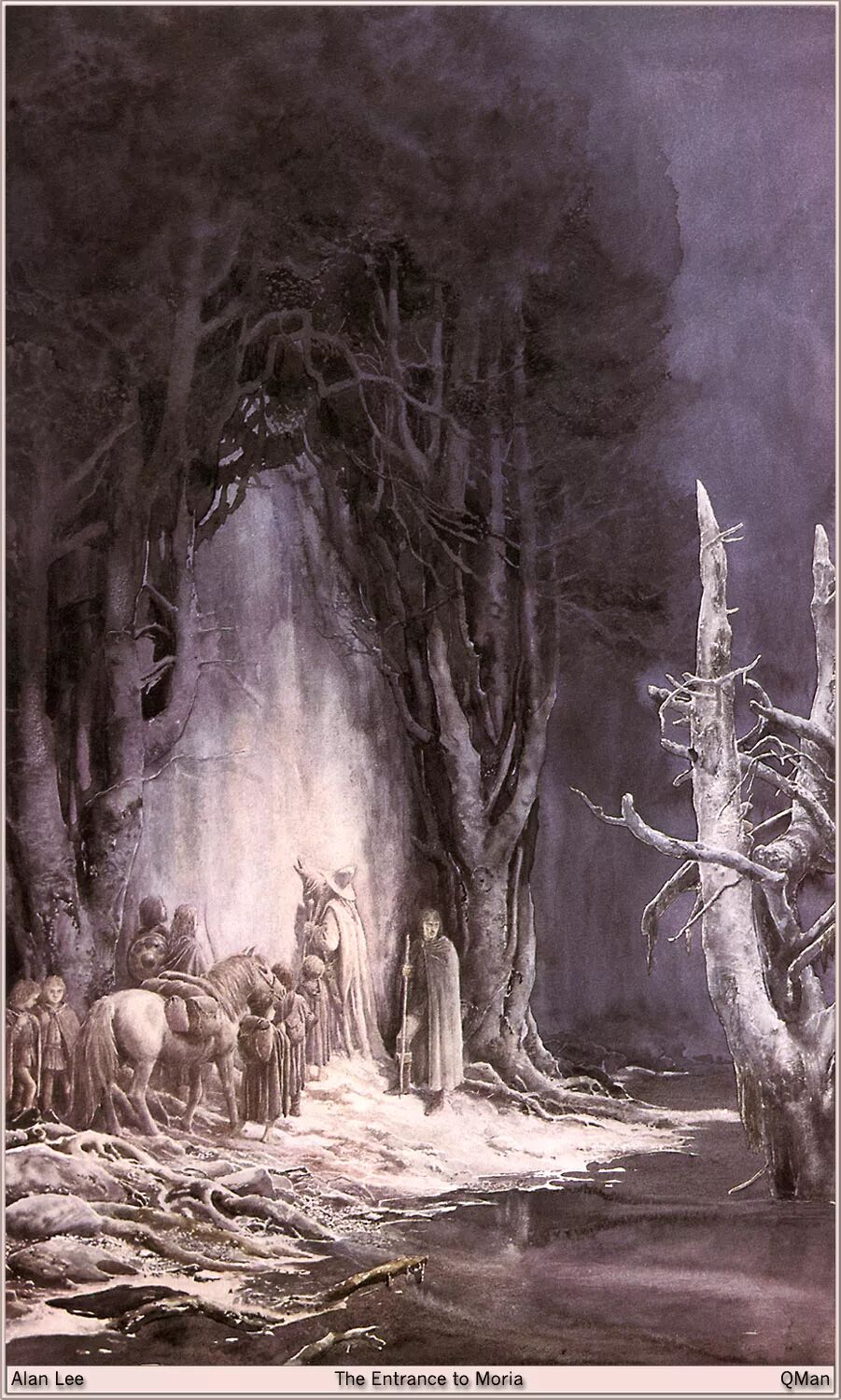 《魔戒》的创作中,阿兰·李选择让景色占据主导地位,而人物只占了画面很小的比例。这样的处理,是为了让读者更容易代入,和主角一起体会在奇幻世界中冒险。避免角色形象太具象化,和读者脑海中的完美形象起冲突。