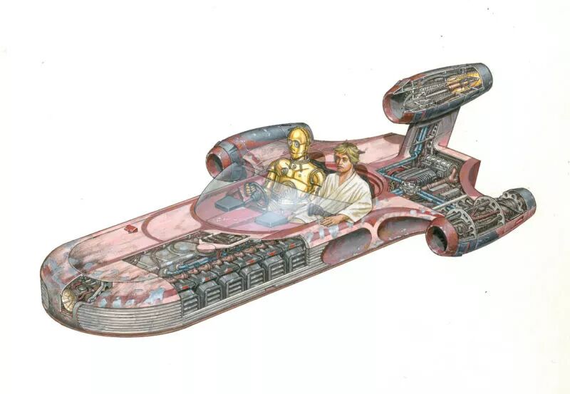 英国插画师,有30年行业经验,从来不用电脑作业,一直是保持手绘,擅长科幻题材的载具、机械设计,代表作品有《星球大战》的载具设计。