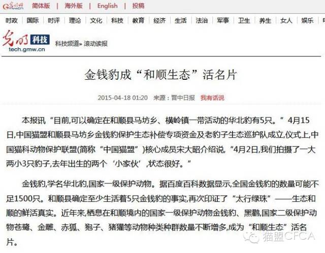 2015年4月15日是猫盟发展中一个重要的日子。山西华北豹保护地春季作业中一项重要工作是在和顺县马坊乡正式成立华北豹伤害牛专项补偿资金和“老豹子”野外巡护队,而这个成立的日子就是4月15日。