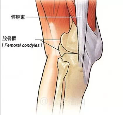 髂胫束是从髋部开始伸延并覆盖膝关节外侧到胫骨外侧表面的一个结缔组织腱,上方连接臀大肌、阔筋膜张肌等肌肉,是固定膝关节的重要结构之一。它的功能是阻碍胫骨内旋、伸直膝关节和使髋关节往外展。