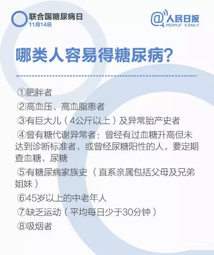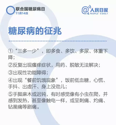导语:11月14日是“联合国糖尿病日”,在第23个纪念日来临之际,中国的糖尿病患者数量依然居高不下。根据国际糖尿病联合会发布的《糖尿病地图》,2013年全球约有3.82亿成年人患有糖尿病,中国的糖尿病患者人数居各国之首。糖尿病有哪些症状?如何预防?科学知识转起来!为父母,也为自己!