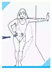 一侧上肢支撑墙面,另侧上肢辅助髋关节缓慢下墙面活动