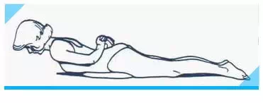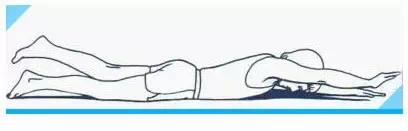 上半身如图试位置,保持髋关节紧贴地面,同时保持下腰部及臀部放松
