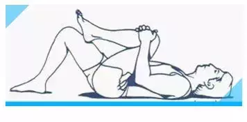 牵拉一侧膝关节直至感觉到下腰部及臀部适度的牵伸,另侧膝关节重复相同动作