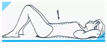 将足置于高位,手臂放于颈后或胸前,整个骨盆放平,抬高头部和肩关节