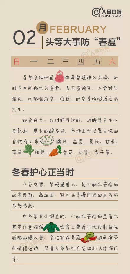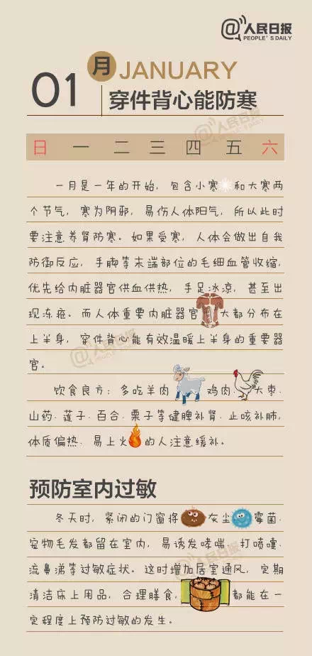新年的一年开始,你是不是已经踌躇满志,给自己定下了新的目标?但你的身体准备好了吗?要知道“身体是革命的本钱”,健康才是众多“0”前面的“1”。2015年健康日历,为你标注出每个月的防护重点↓↓为你和家人的身体健康,转发收藏!