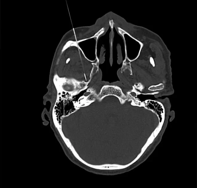 治疗原理:三叉神经为感觉神经,其中神经纤维(AA纤维和AB纤维)能耐受较高温度,而痛觉神经纤维不能耐高温,CT引导三叉神经热凝术选择破坏痛觉纤维,使患者疼痛治愈。