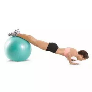 进阶:下肢只有小腿被瑜伽球支撑,大部分力量集中在手臂。