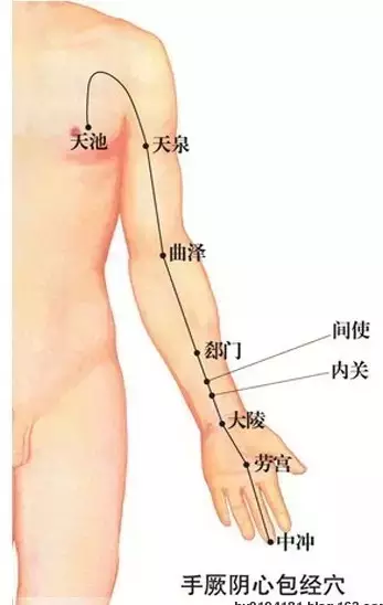 可以沿着心包经的穴位逐个揉按,每个穴位以痛为标准,凡是按到痛的点就要多按几下,最好按到让它感觉不痛了,按压的力度不需要太重,按压时多停留几秒钟。平均每个穴位按摩2~3分钟。