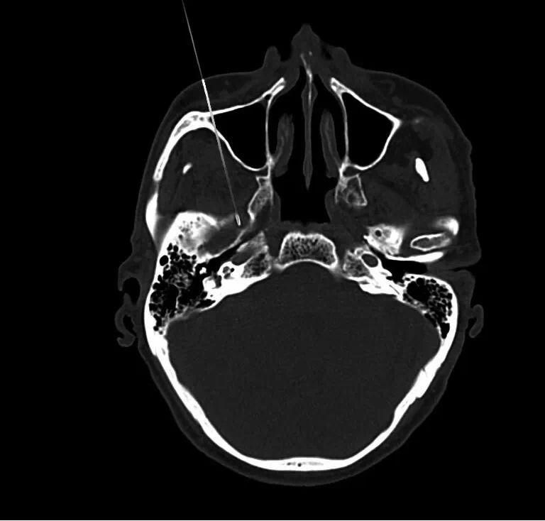 治疗原理:三叉神经为感觉神经,其中神经纤维(AA纤维和AB纤维)能耐受较高温度,而痛觉神经纤维不能耐高温,CT引导三叉神经热凝术选择破坏痛觉纤维,使患者疼痛治愈。