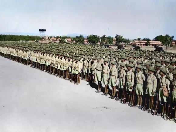 1943年12月,中国驻印军在兰姆伽的美军训练基地整齐地排好方阵,准备接受蒋介石的检阅。