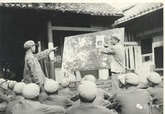 华东军大政教团组成农村宣传队,下乡为老百姓宣传。 张亚生摄