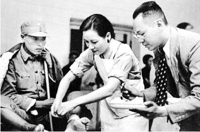 6、宋美龄亲自为伤兵包扎当年的10月22日,宋美龄亲自从南京赶往上海抗战前沿慰问,当时上海的抗日军队大多都集中在淞沪前线,而日本军用飞机每天仍然还在不停地向前线投弹,对抗战军队进行狂轰滥炸。宋美龄来到上海的第二天,就决定亲自去前线慰问抗日将士。